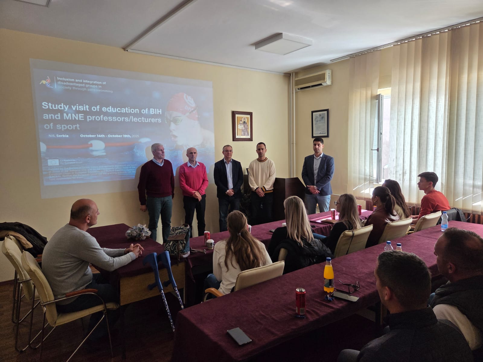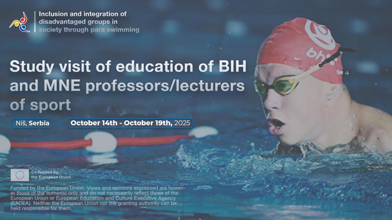 Средином октобра је Факултет спорта и физичког васпитања Универзитета у Нишу (ФСФВ) био домаћин едукације у оквиру Ерасмус + пројекта из области изградње капацитета у спорту „Inclusion and integration of disadvantaged groups in society through para swimming“ („ParaSwInclusion“). Едукација се односи на област парапливања, а полазници обуке су били пливачки тренери и професори физичког васпитања из Босне и Херцеговине и Црне Горе (што је предвиђено пројектом), али и Хрватске. Иначе, координатор пројекта ParaSwInclusion је Параолимпијски комитет Босне и Херцеговине (ПК БИХ), а партнери су: Универзитет у Сарајеву – Кинезиолошки факултет (КИФ УНСА), Хрватски парапливачки савез (ХППС), Пливачки клуб “СПИД” – Сарајево, ПК ОСИ Мако – Подгорица, Верлаб институт – Сарајево, БРАВО - Сарајево и ФСФВ.