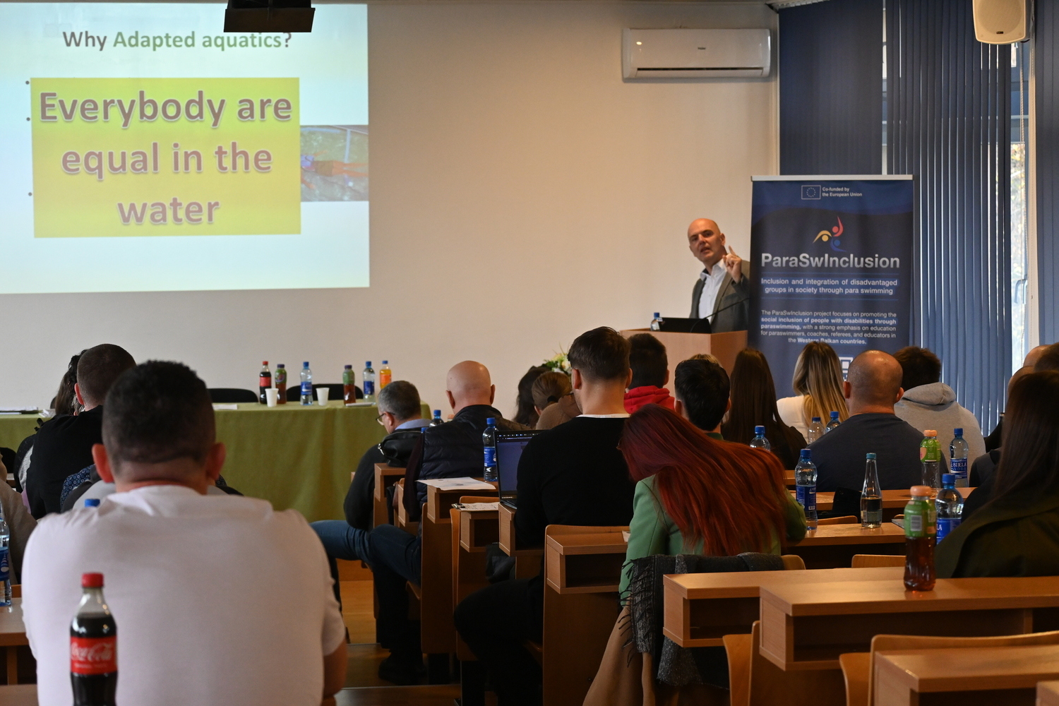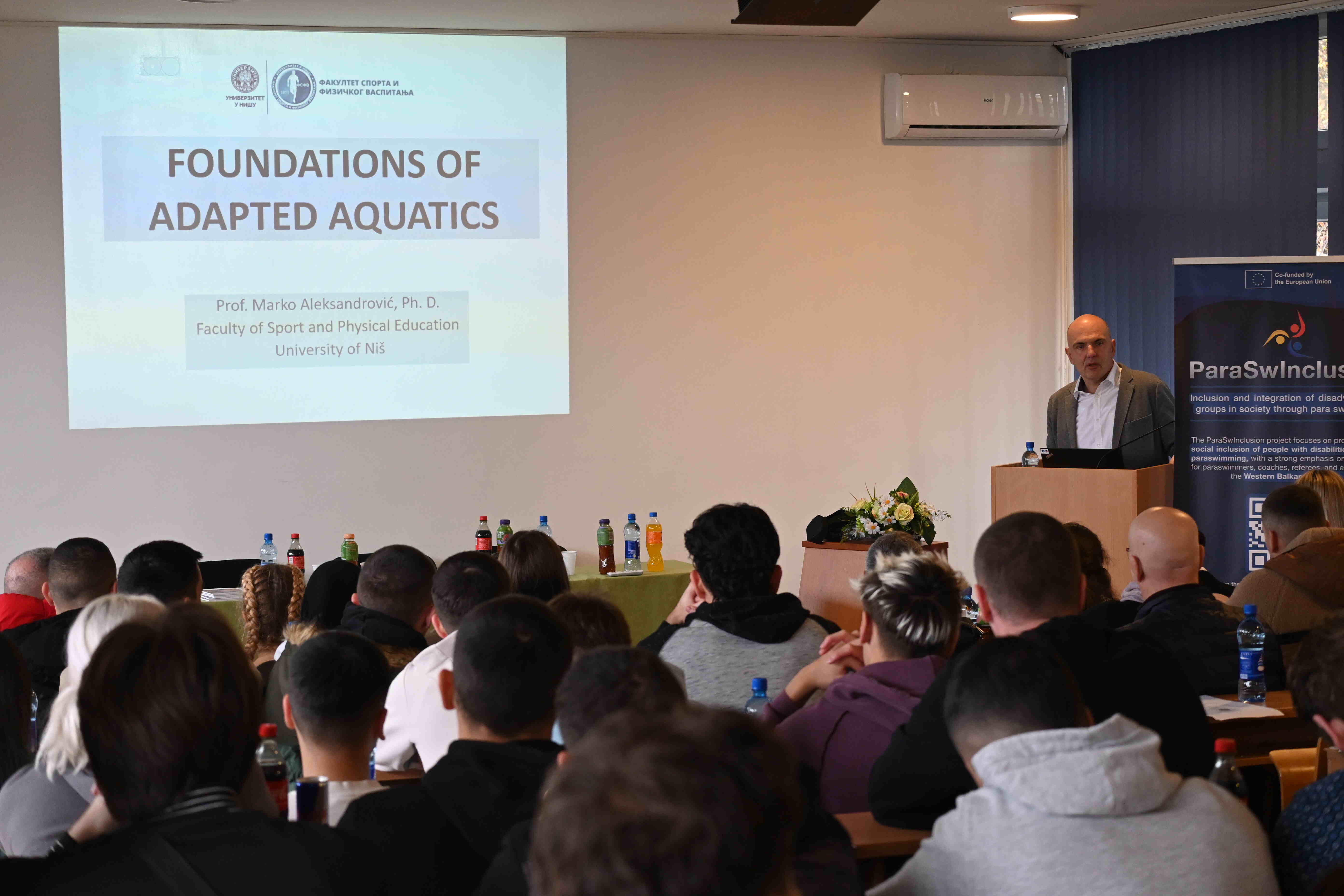 У пуном амфитеатру КФ, активност је отворена речима добродошлице проф. др Ифета Махмутовића, декана КФ. Присутне је поздравио представник Параолимпијског комитета Босне и Херцеговине (ПК БИХ), координатора пројекта „ParaSwInclusion“, мр Осман Ханџић, иначе генерални секретар те спортске организације. Оперативне информације о агенди „ParaSwInclusion“ активности је дао др Слободан Клачар, стручни сарадник за међународну сарадњу и осигурање квалитета при КФ. Присутне су поздравили и декан ФСФВ, проф. др Томислав Окичић, али и тренер сребрног босанскохерцеговачког парапливача са последњих ПОИ у Паризу (Исмаила Барлова) - проф. Амел Капо.