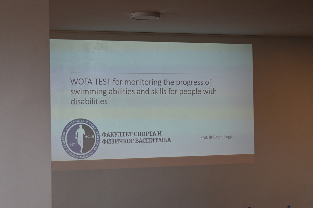 Теоретске основе адаптираног пливања је дао проф. др Марко Александровић („Conceptual and theoretical basics of adapted swimming“). Проф. др Бојан Јоргић се надовезао предавањем о тестовима оријентације у води применљивим за ОСИ („WOTA TEST for monitoring the progress of swimming abilities and skills for people with disabilities“) и инклузијом у физичком вежбању („Inclusion in physical activities“).