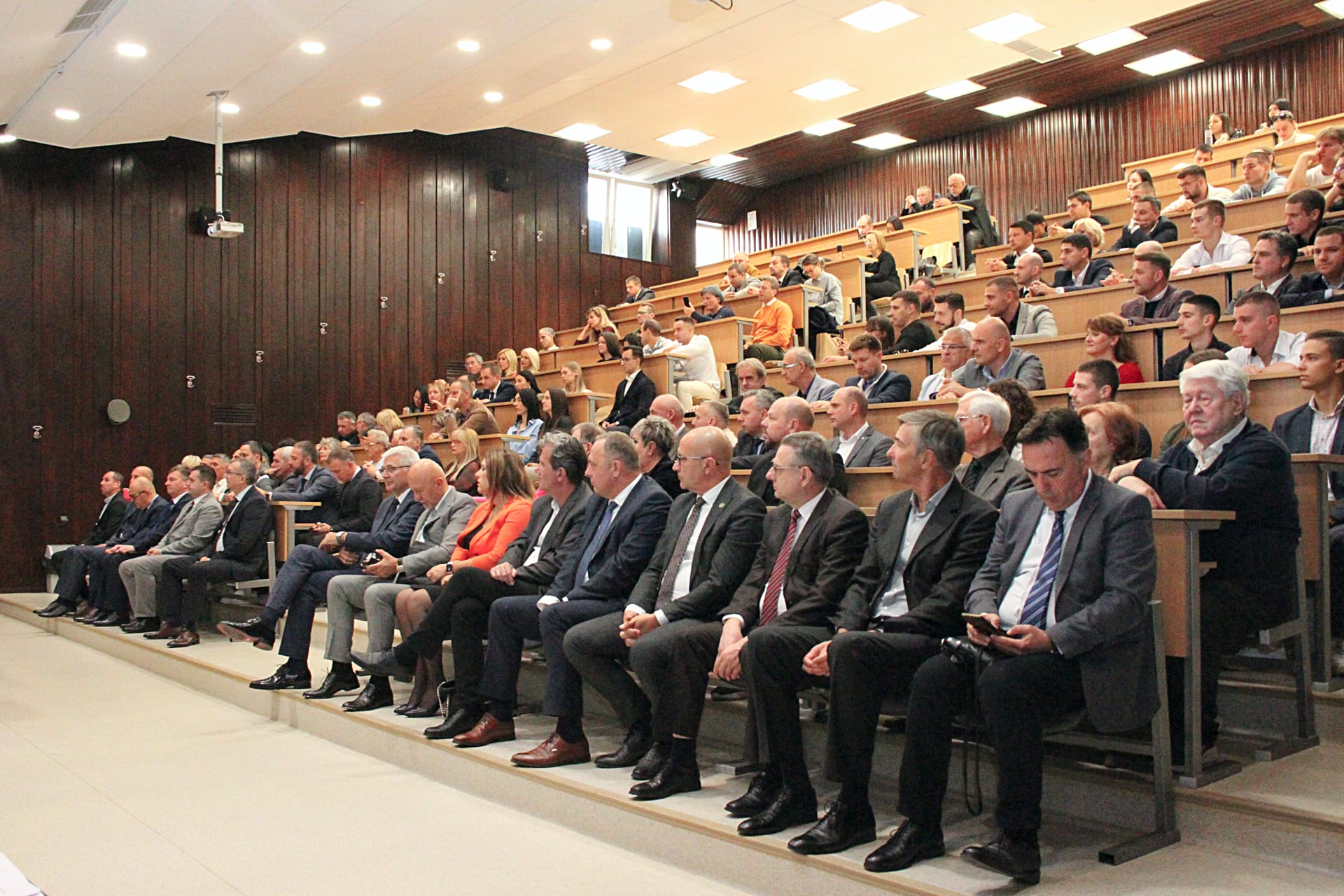 У пуном амфитеатру факултета са великим бројем угледних званица присутнима се најпре обратио декан Факултета спорта и физичког вапитања проф. др Томислав Окичић.